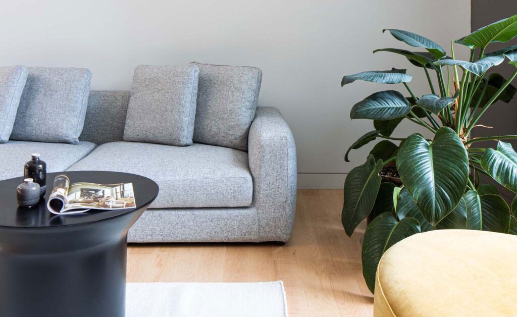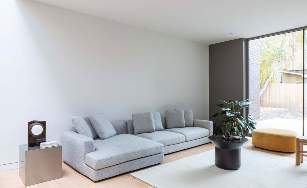 Within this opened and luminous space, edb furniture. The Dive sectional, Elephant stools, Panorama ottoman and Inox Cube.