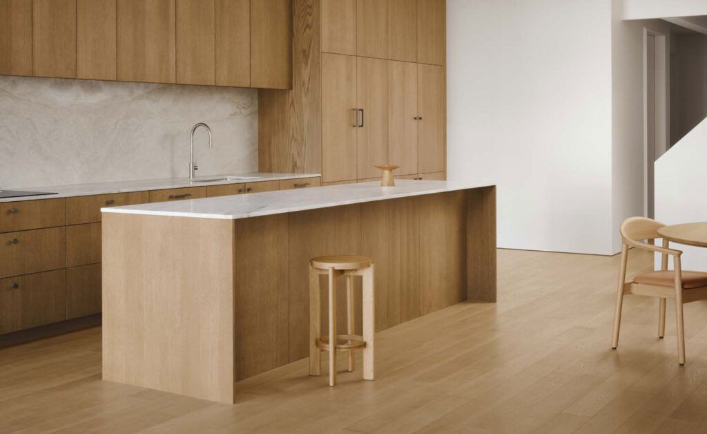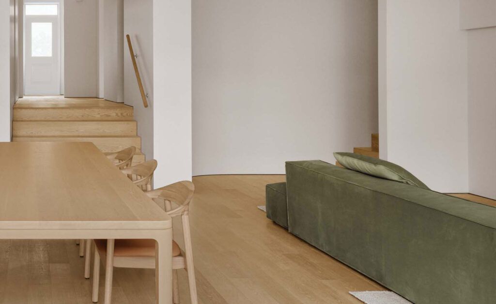 Elements of depth are predominantly used in the construction of the Casgrain dwellings. The staggered volumes of the rear facade and the clean, straight lines of the interior architecture recall the different levels that make up the Parterre sofa, one of element de base’s most recent creations.