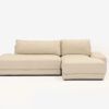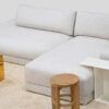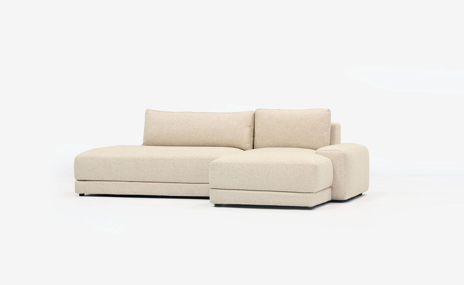 Designed to be anchored to the floor. Large armrest, open layout. Generous seat and back cushions. Softness meets amplitude. Covers are fully removable for easy care.