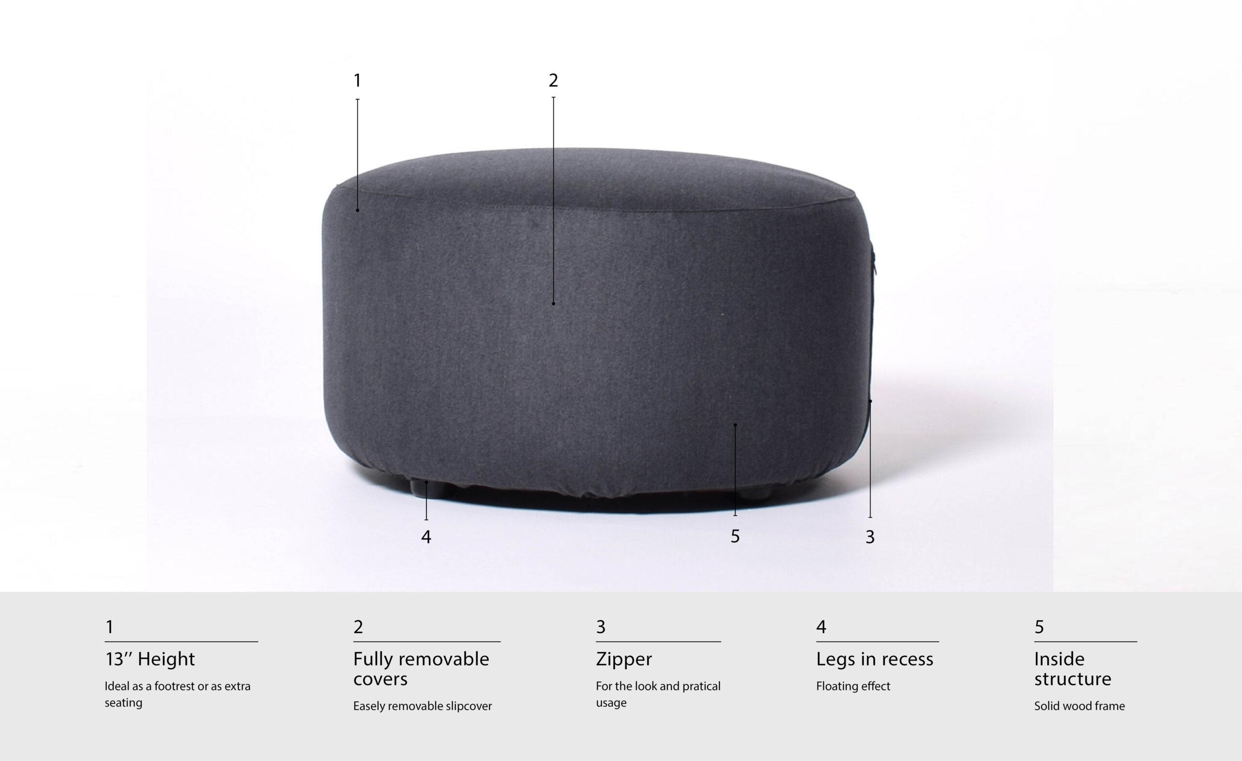 round and comfortable, our ottoman dia24 is ideal for sitting or supporting tired feet. it gives style and interest to your space. with a completely removable cover, it enables to mix and match as much as you want!