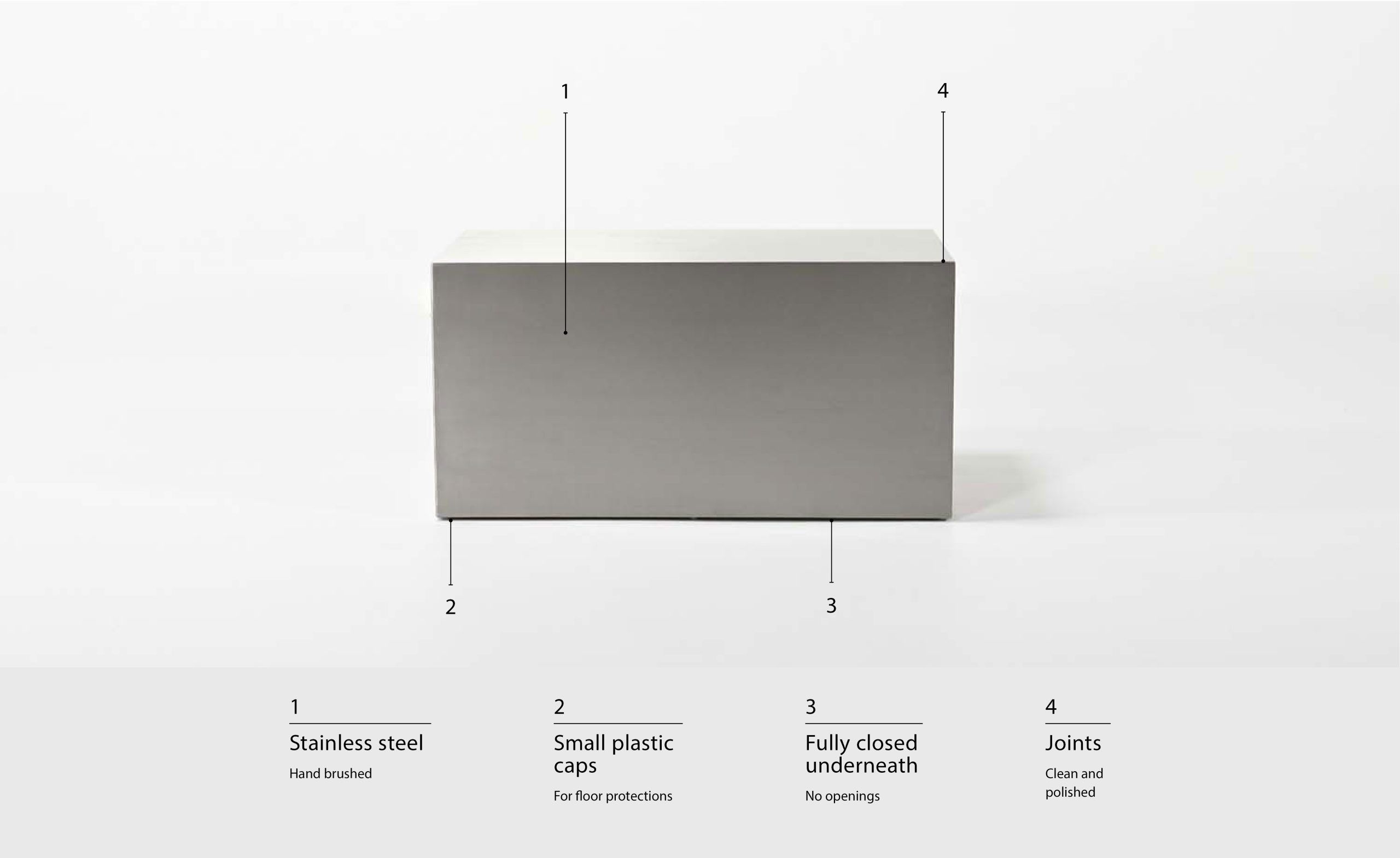 a desire for restrain, simplicity and reduction. yet a shape so alluring and enduring. made out of stainless steel, the seamless joints require unique workmanship and techniques. the combination of a strong material on a basic shape.