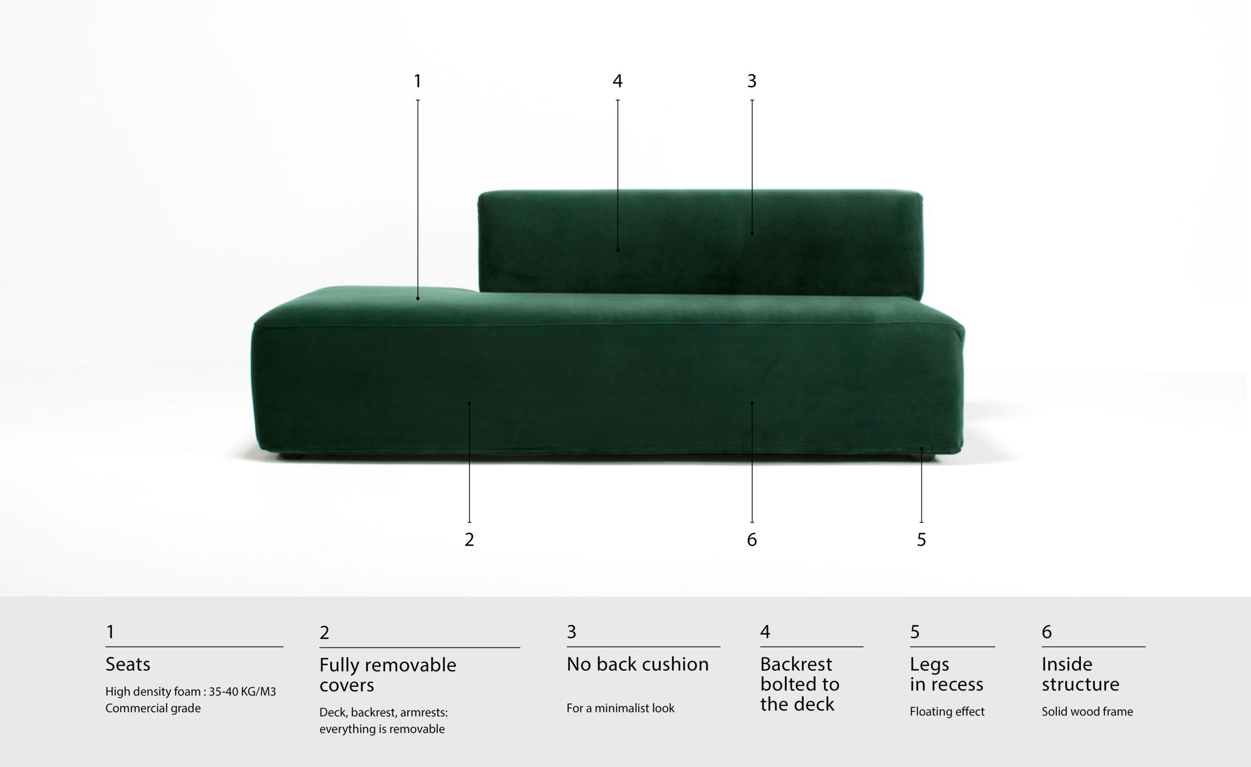 The power of shapes. The distinctive character of Panorama lies in the diversity of its modules. Unusual angles, straight and supportive seats, curvilinear structures, elementary shapes. Ideal for both residential and commercial settings. Features fully removable slipcovers and is available in all edb fabrics.