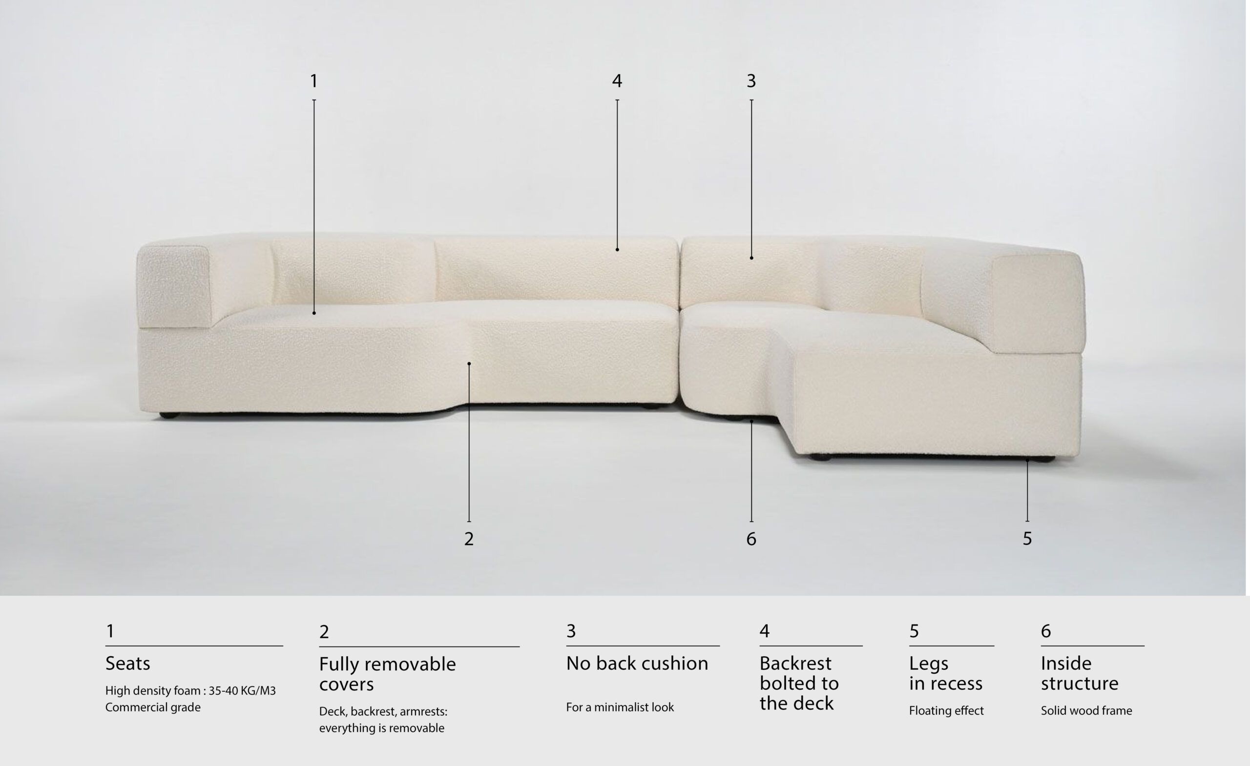 The power of shapes. The distinctive character of Panorama lies in the diversity of its modules. Unusual angles, straight and supportive seats, curvilinear structures, elementary shapes. Ideal for both residential and commercial settings. Features fully removable slipcovers and is available in all edb fabrics.