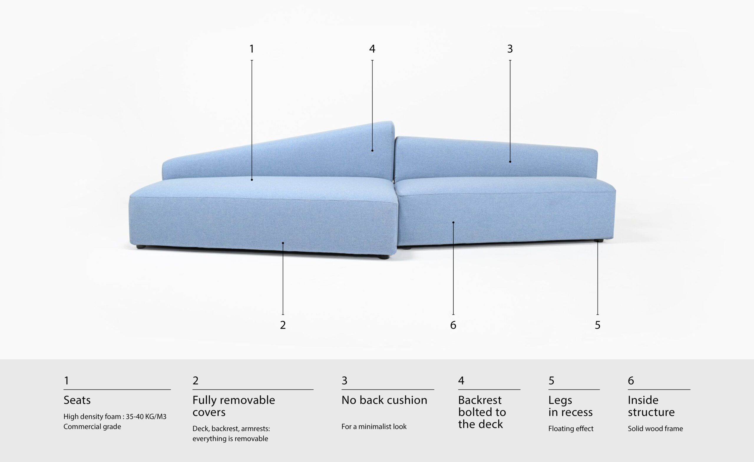 New. Joining the Panorama collection, the new Iceberg modules add a touch of versatility and unusual shapes. The inspiration for the name Iceberg comes from its distinctive volumes and angles. Its sloping backrest is reversible, allowing a multitude of arrangements. Iceberg modules can be combined with each other or with any other Panorama module to create limitless configurations. Features fully removable slipcovers and is available in all edb fabrics.