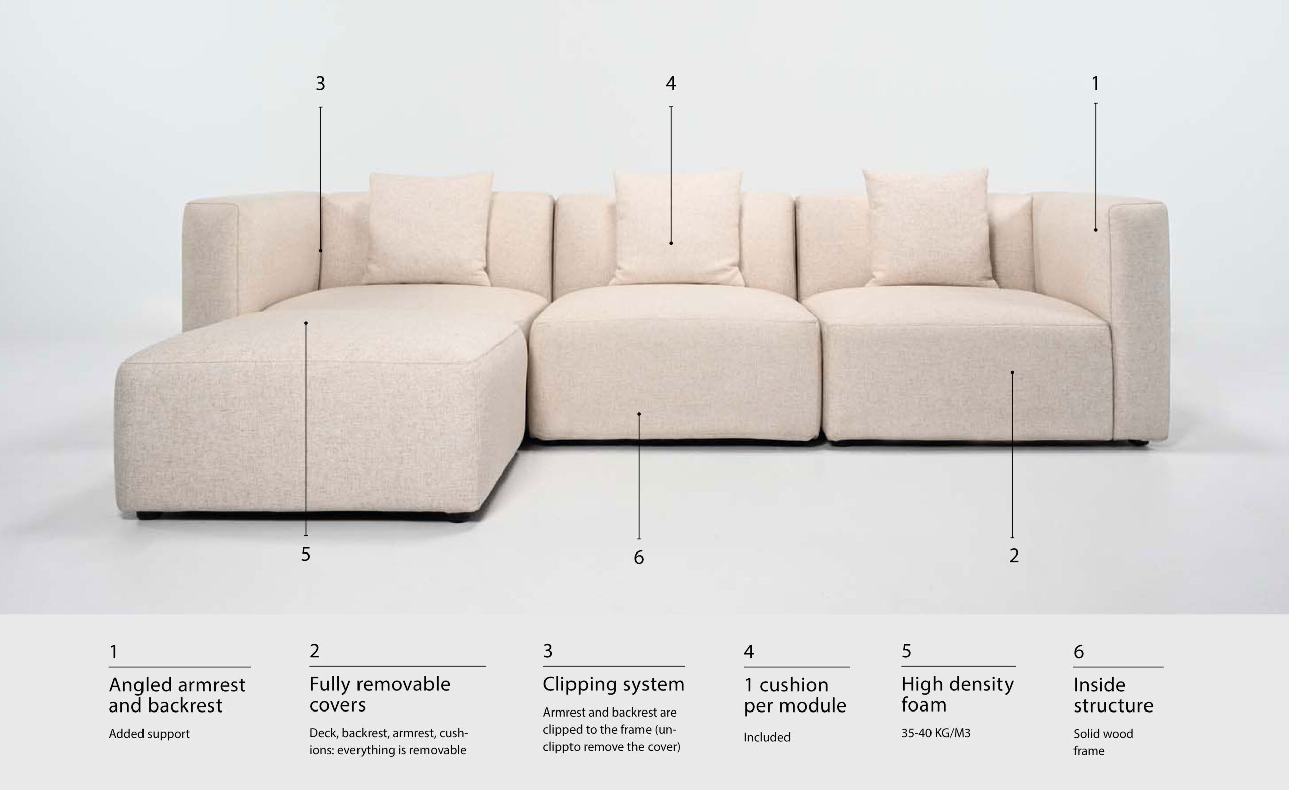 Ideal for smaller spaces, the Section is versatile and modular. Its floor-level design and simple lines give it a classic look. The high-density foam seat provides a supportive, bouncy comfort. Each module comes with a back cushion for extra comfort and a decorative touch. Features fully removable slipcovers and is available in all edb fabrics.