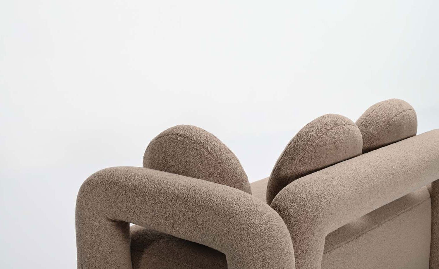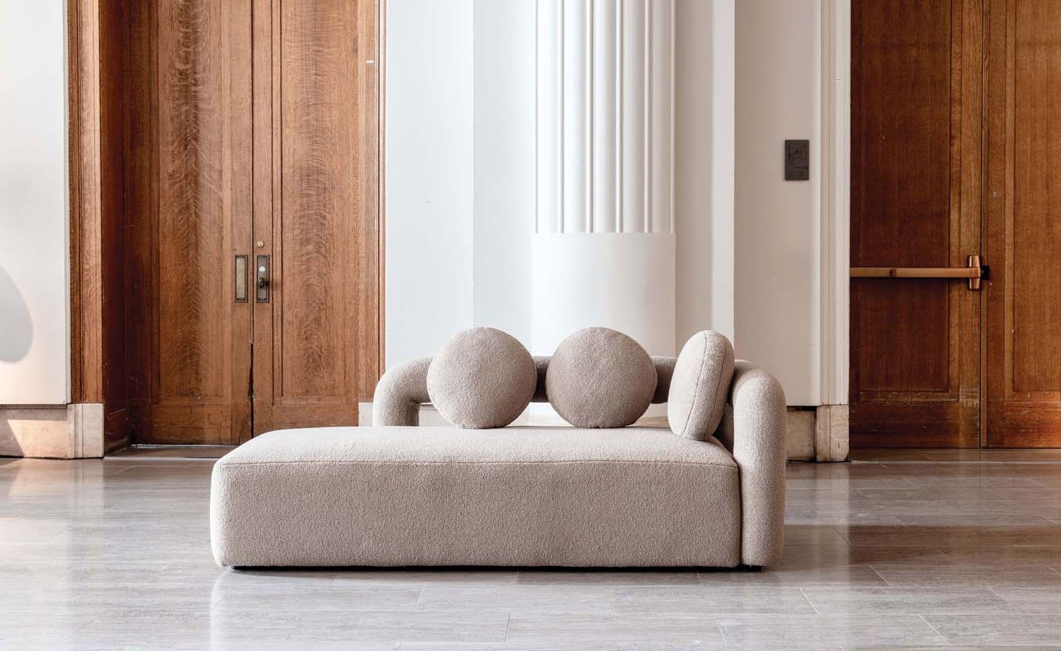 _ $1470member price. Longue chair left. NEW! The Tube sofa clearly exemplifies its name. Its tubular shape is what defines this sofa collection. Large tubular frames bolted to the seat frame act as armrest and backrest. Round back cushions come with each module adding more sphericity and graphic curves. Fully removable covers. Available in 6 colors in a special stretch fabric, the Wooly.