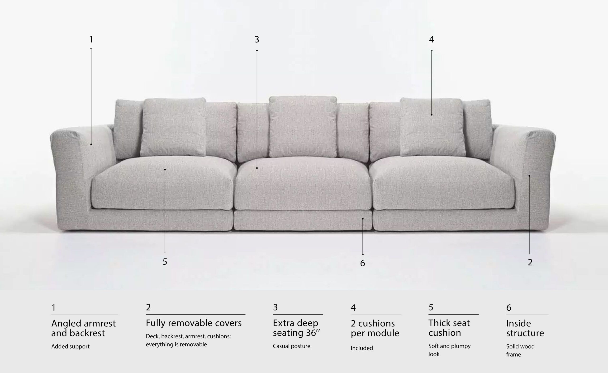 an interpretation of depth, roundness and snugness. a demonstration of modularity, flexibility and generosity. an expression of freedom, play and personality. the weekend sofa system is composed of three basic modules that can be arranged and rearranged in limitless combinations of fabrics and layouts. fully removable covers.