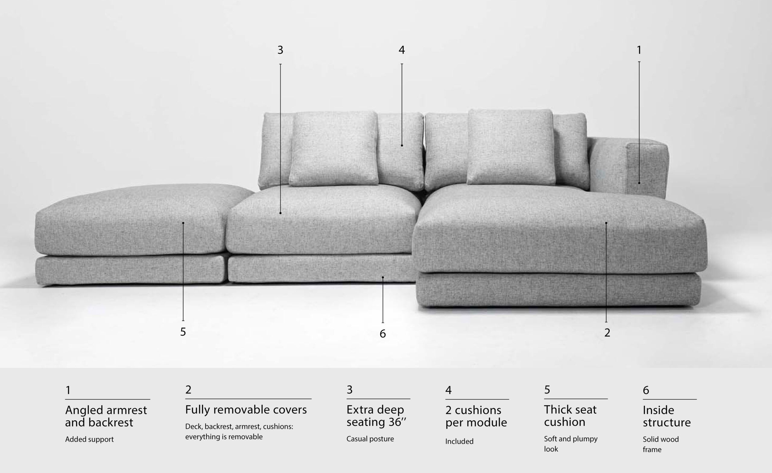 an interpretation of depth, roundness and snugness. a demonstration of modularity, flexibility and generosity. an expression of freedom, play and personality. the weekend sofa system is composed of three basic modules that can be arranged and rearranged in limitless combinations of fabrics and layouts. fully removable covers.