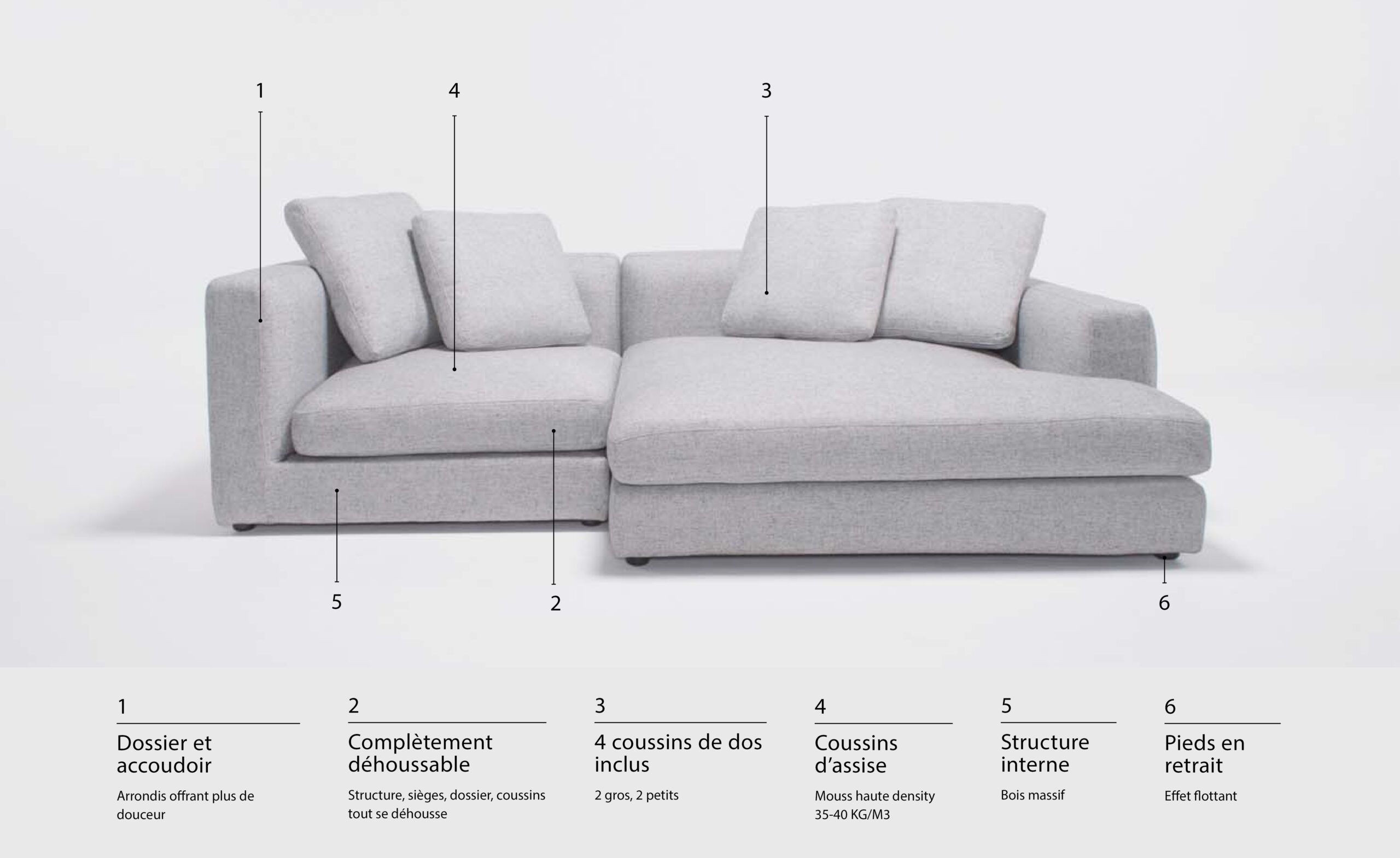 1 an de garantie couvrant les châssis et les coussins de nos canapés contre tout défaut de fabrication et de matériaux.