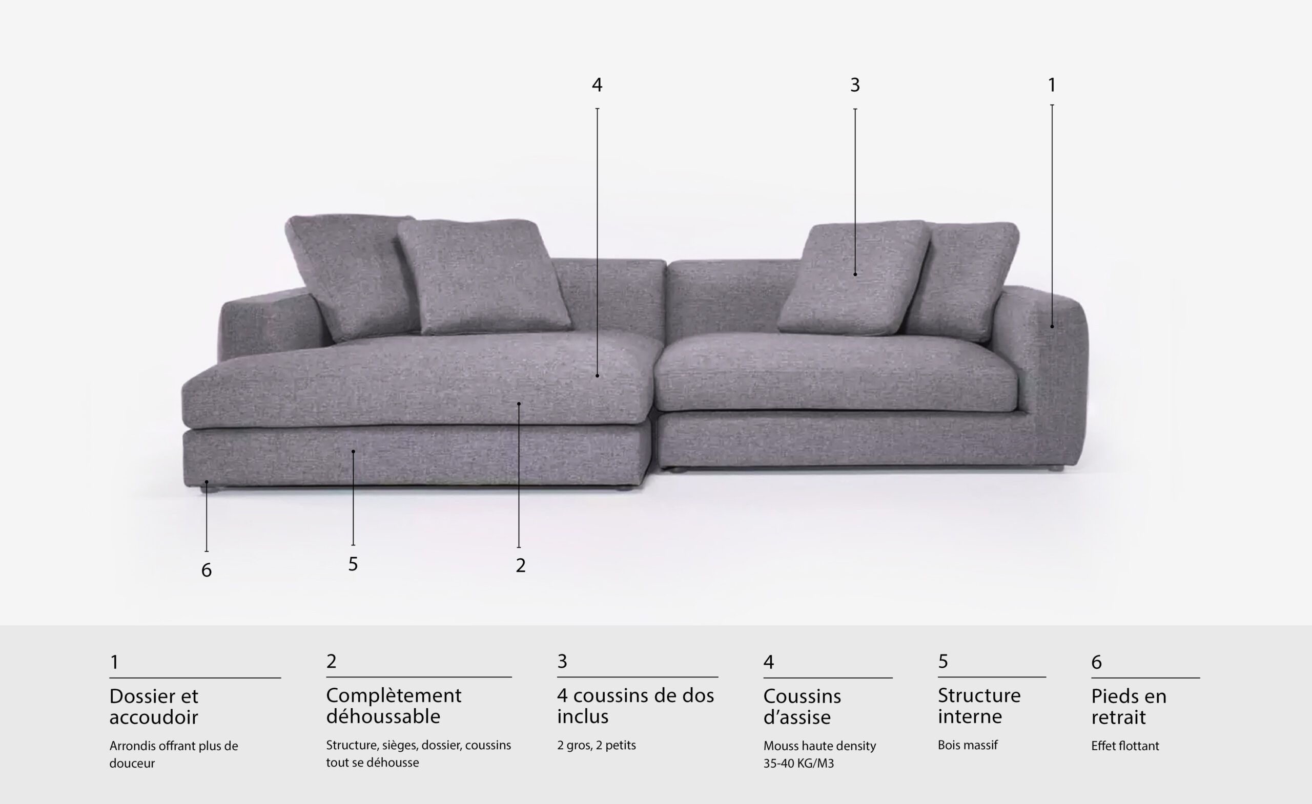 1 an de garantie couvrant les châssis et les coussins de nos canapés contre tout défaut de fabrication et de matériaux.