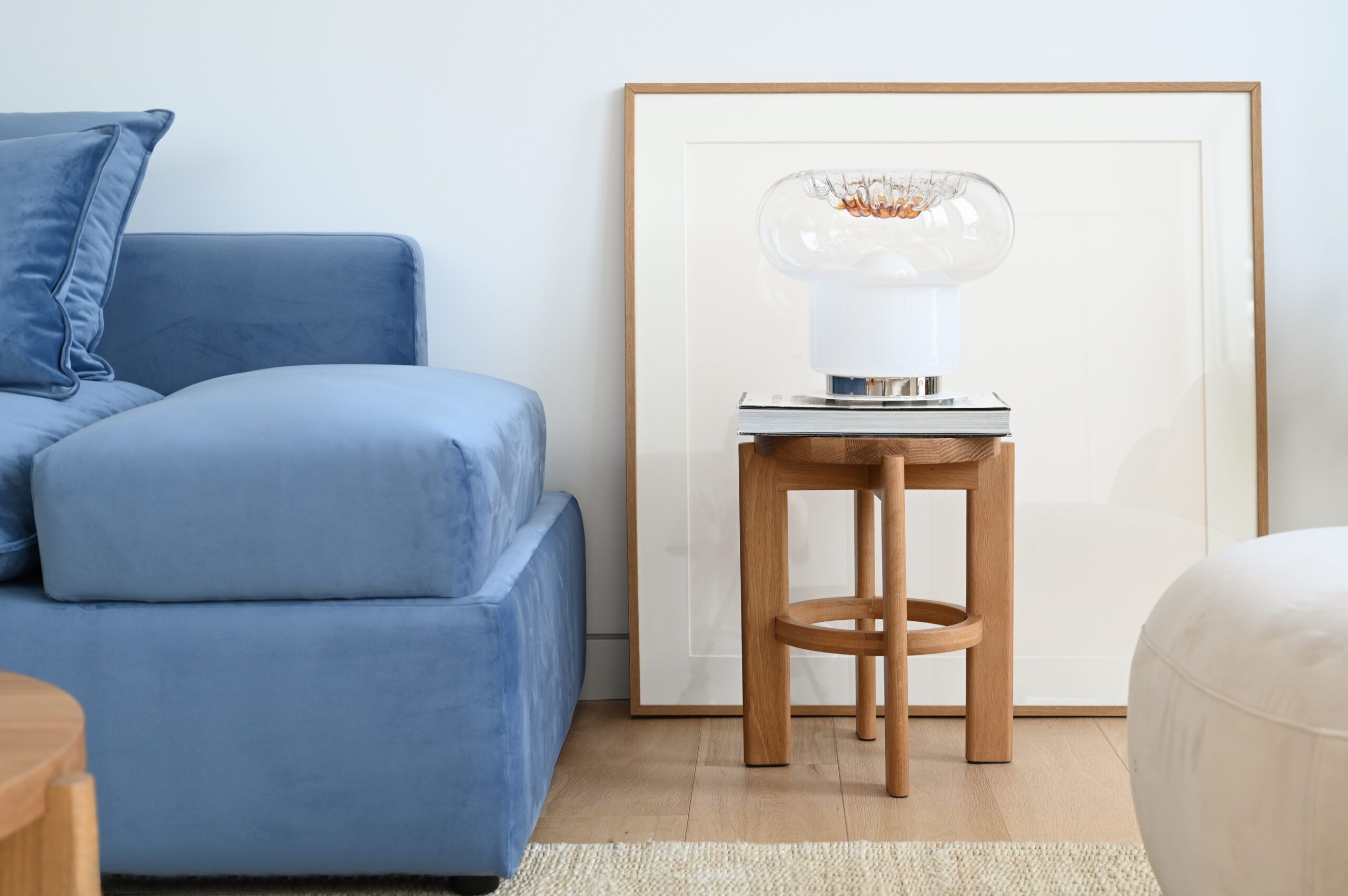 nouveau. tabourets en chêne américain massif. quatre pattes surdimensionnées, légèrement arrondies et dépassant légèrement de l’épaisse assise caractérisent le tabouret elephant. d’une hauteur de 18″ (présenté ici), il peut servir de siège, de table basse ou de surface de rayonnage. disponible en deux hauteurs et deux finis. hauteur de table ou hauteur de comptoir. entièrement en chêne massif ou avec un siège en cannage. aucun assemblage requis.