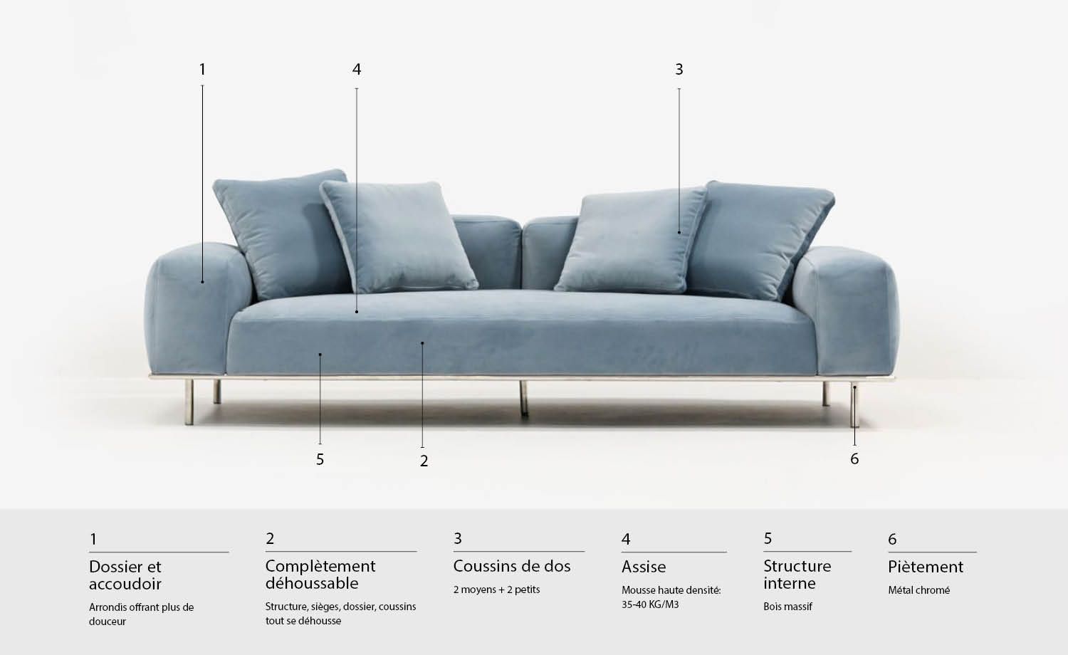 Entièrement déhoussable et disponible dans tous les tissus edb.