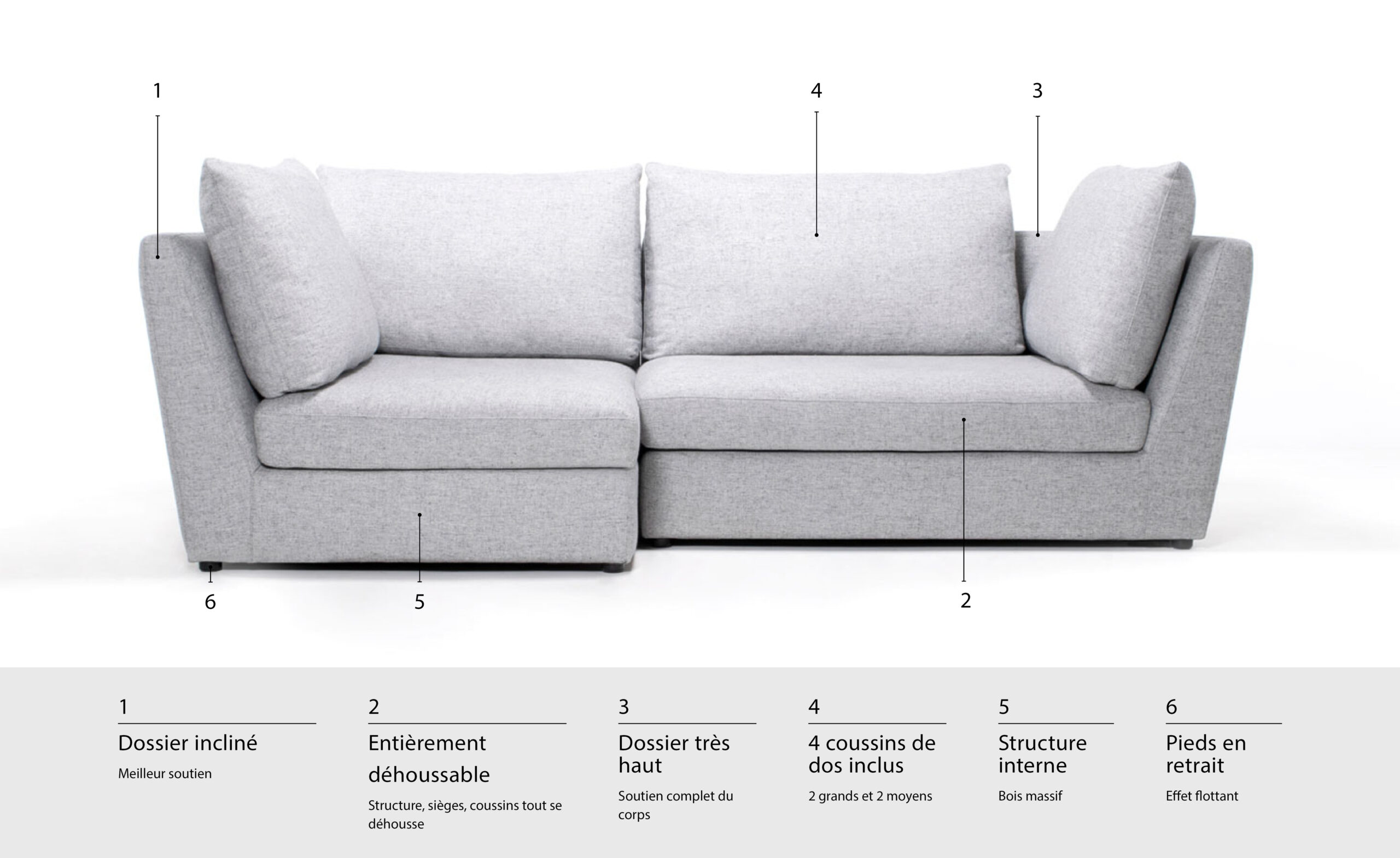 1 an de garantie couvrant les châssis et les coussins de nos canapés contre tout défaut de fabrication et de matériaux.