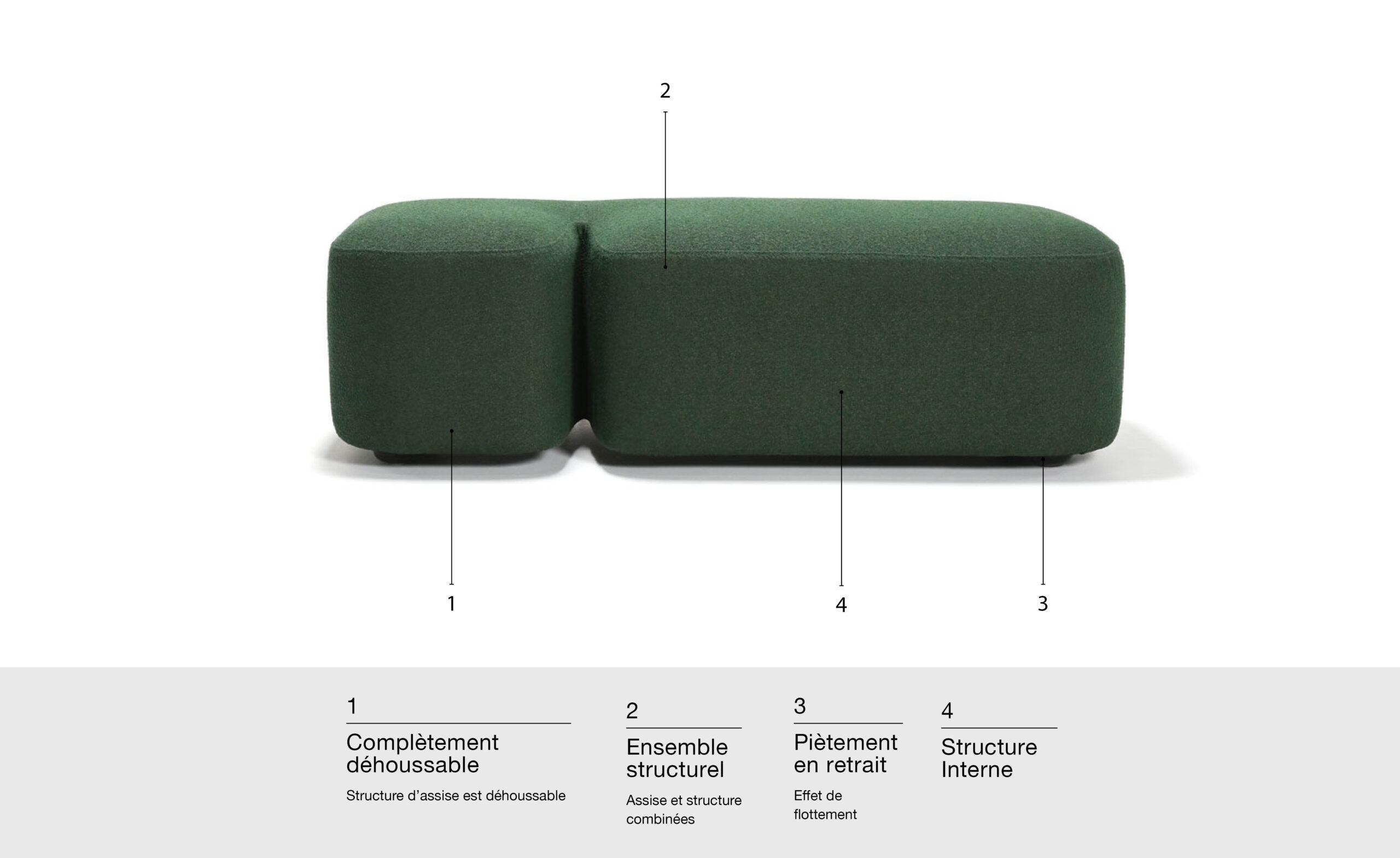 La force des formes. Le caractère distinctif du Panorama réside dans la diversité de ses modules. Angles inusités, assises droites et soutenues, structures curvilignes, formes élémentaires. Idéal tant dans les contextes résidentiels que commerciaux. Entièrement déhoussable et disponible dans tous les tissus edb.