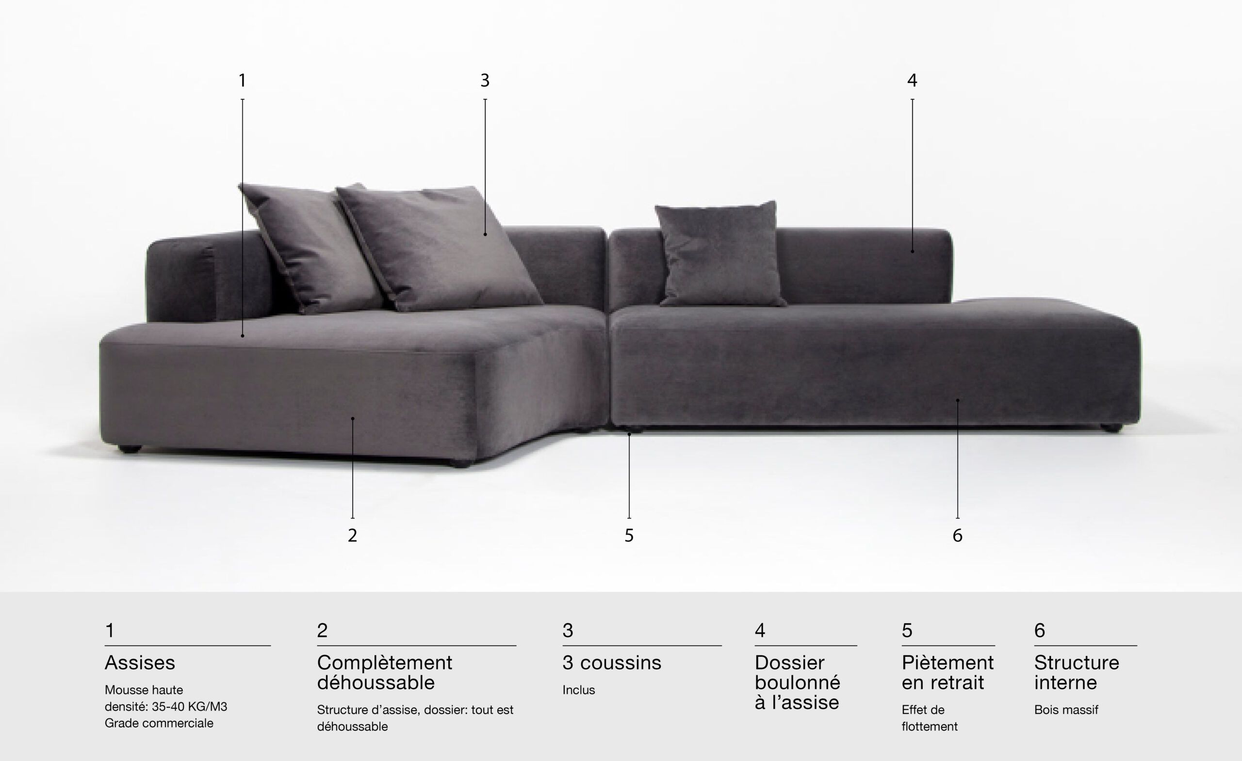 1 an de garantie couvrant les châssis et les coussins de nos canapés contre tout défaut de fabrication et de matériaux.