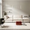 Douillet. Invitant. Joufflu. Le sofa Puff est désormais le nouveau roi de la mollesse chez edb. Avec ses coussins généreux et son rembourrage en trillium, la collection Puff offre un confort à la fois moelleux et soutenu. Modulable à souhait, il s’adapte aisément à tous les espaces, du petit sofa deux places aux configurations sectionnelles plus imposantes. Avec ses multiples options de modules, la collection Puff transforme chaque intérieur en un véritable cocon de détente. Entièrement déhoussable et disponible dans tous les tissus edb.